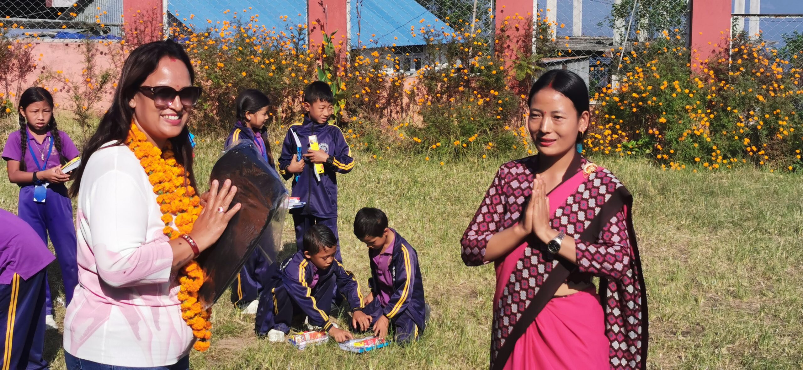 Passé les remerciements, le discours des adultes, la remise de cadeaux de gratitude aux professeurs et d’une imprimante laser attendue, c’est le temps des chants, des comptines. Train gari ! train gari ! le petit train s’anime derrière Prithivi.