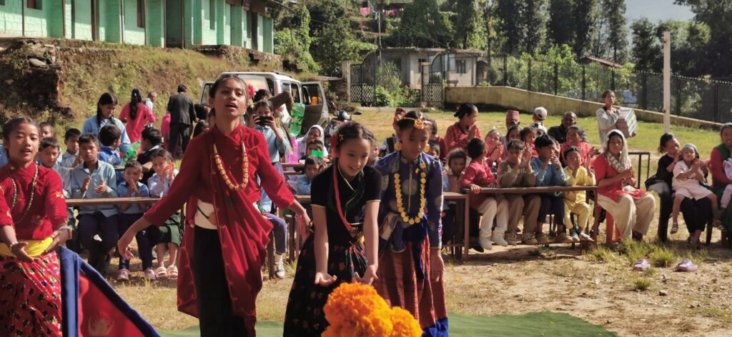Après trois heures et demie de route de notre point d’attache de Bhaktapur, c’est par une route très escarpée que nous arrivons dans le petit village de Tauthali (district de Sindulpachok). Nous voilà dans la onzième école que Thanaka a décidé d’aider depuis deux ans.